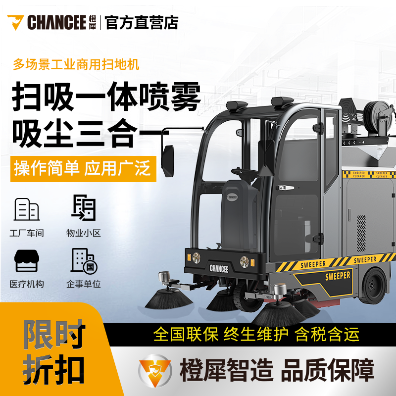 橙犀U190C 駕駛式掃地機:掃吸一體機駕駛式掃地車,可以坐著就能完成清潔工作的機器,全面封閉設計,可以在各種環境下使用,六面體主刷使用清潔更高效。清潔效率高達19000㎡/H