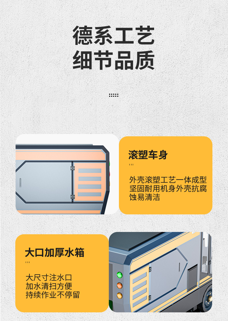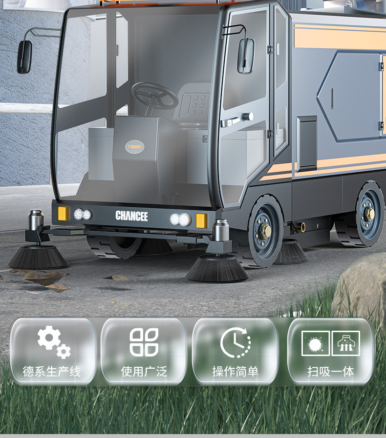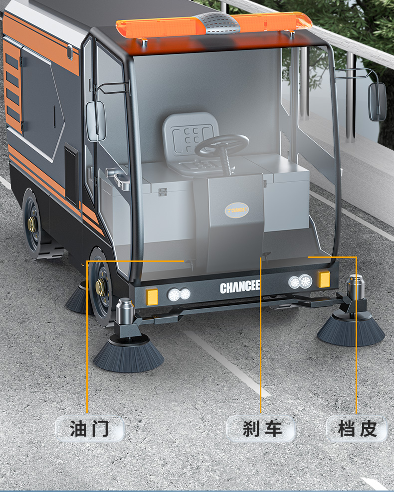 橙犀U220C 駕駛式掃地機:橙犀駕駛式掃地機,全封閉模式可以抵抗惡劣天氣,大寬幅主刷首創六面體主刷鏈接,使用壽命提升18%,+500mm四邊刷清潔效果大幅度提升,清潔更高效快捷。