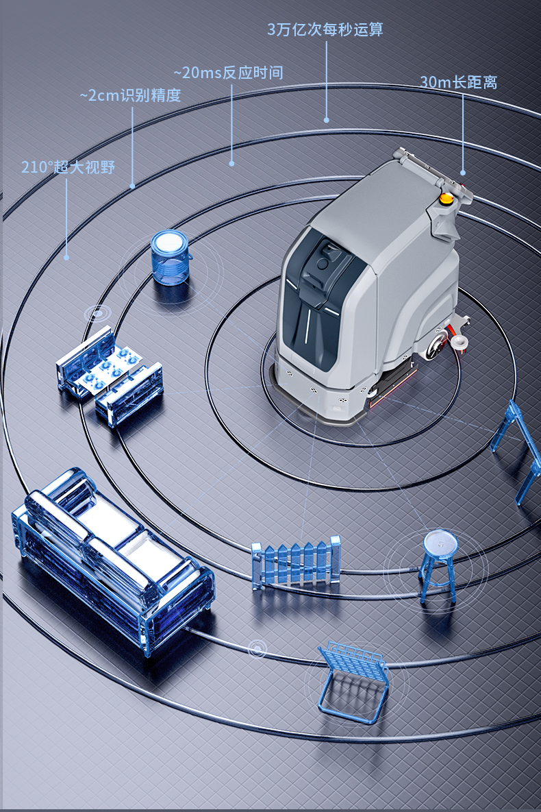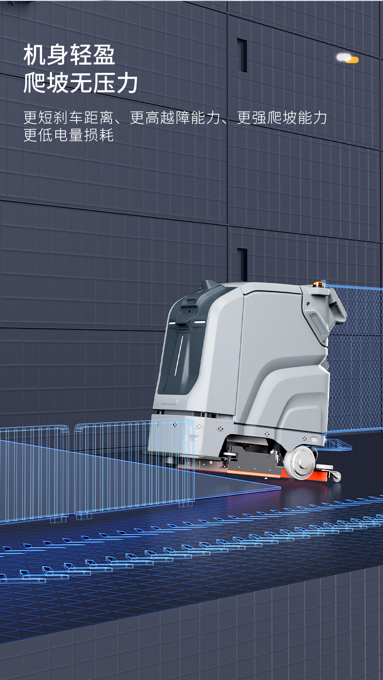 橙犀靈犀1號 無人式洗地機 :靈犀1號擁有最佳通過性,身寬58cm,整機的重量最輕,凈重在200kg以內,新技術加持,三維成像,不同場景可以快速建圖使用。可以使用新廣角3D TOF模組,全智能導航。